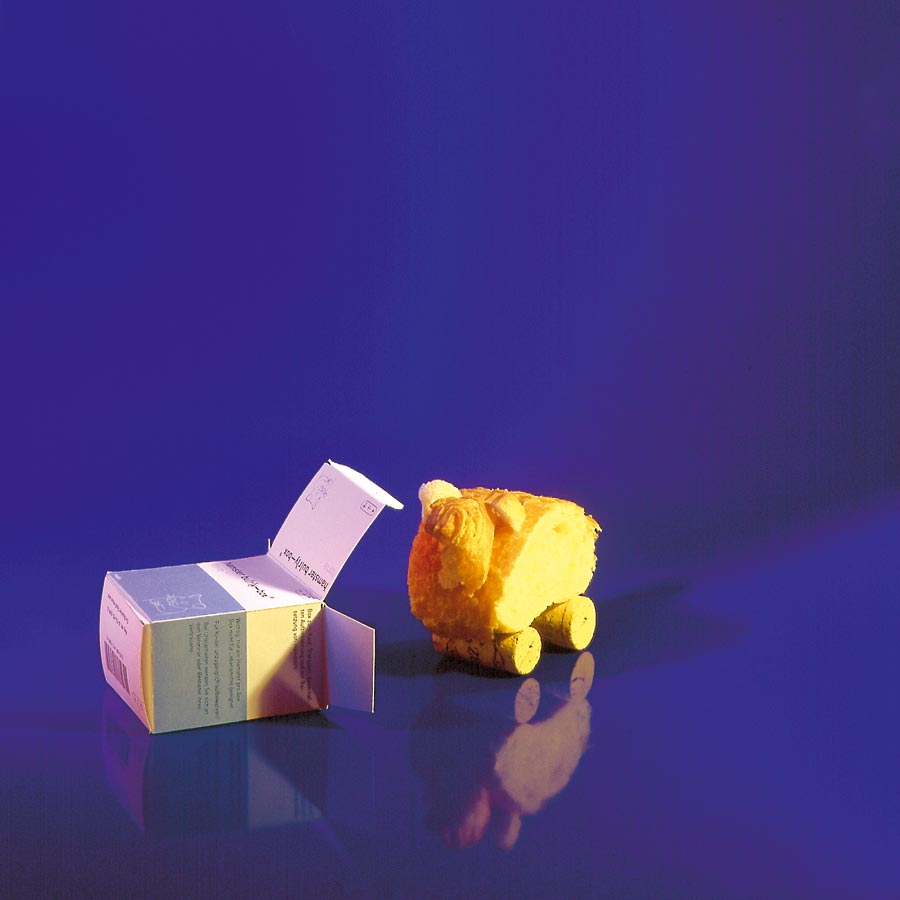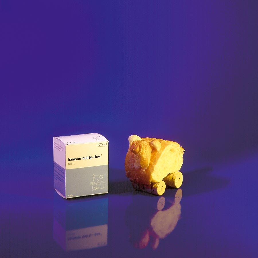 verpackungsdesign, produktion und fotografische benutzungsanweisung inklusive bau eines hamsters aus rotweinkorken und croissants